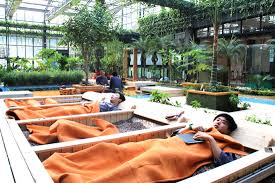 미리내 힐빙클럽의 푸실 찜질방은 숲속의 자연환경과 조화를 이루는 특별한 공간입니다. 이곳에서는 실내외로 다양한 찜질과 족욕을 경험할 수 있습니다.