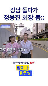 tvN 예능 프로그램 <밥이나 한잔해> 3회 예고에서는 나영석 PD와 정용진 회장이 깜짝 등장했습니다. 이번 회는 김희선의 집이 있는 강남 청담동을 배경으로 진행됩니다.