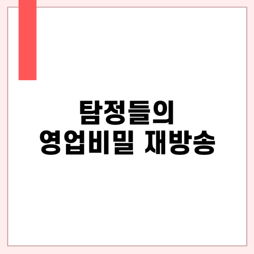과연 어떤 식으로 사건이 전개되었고, 탐정들은 어떤 영업비밀을 밝혀냈을까요? 이 글에서는 이번 회차의 줄거리, 핵심 포인트, 재방송 방법 등을 자세히 알아보겠습니다.