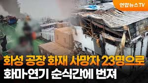 지난 24일 오전 화성시 서신면의 일차전지 제조업체 아리셀에서 발생한 대형 화재 사고로 23명이 사망했습니다. 경찰과 소방당국은 사고 다음 날인 25일 오전 11시 34분, 아리셀 공장 3동 2층에서 추가로 1명의 사망자 시신을 발견했습니다.